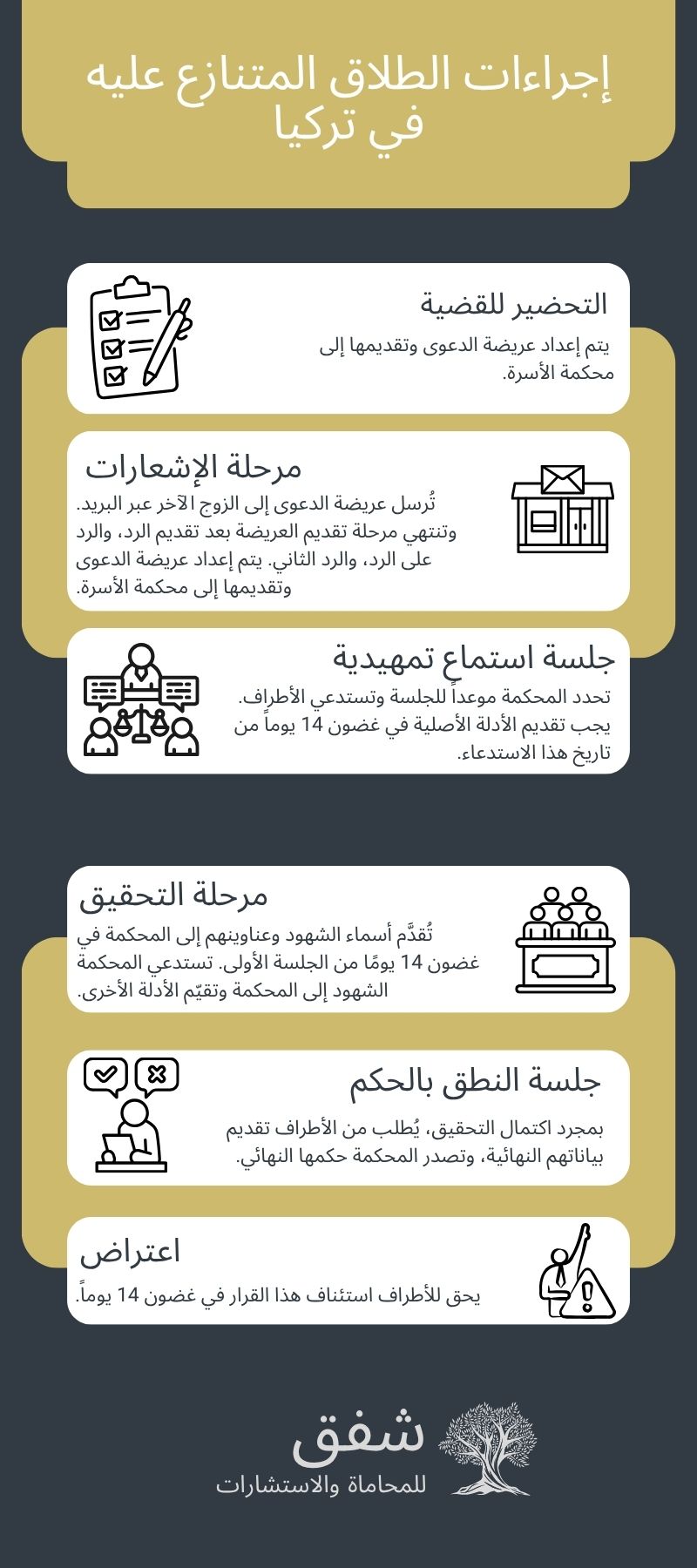 إذا كان الأجانب سيرفعون دعوى طلاق متنازع عليها في تركيا، فإن الإجراءات تسير على النحو الآتي: